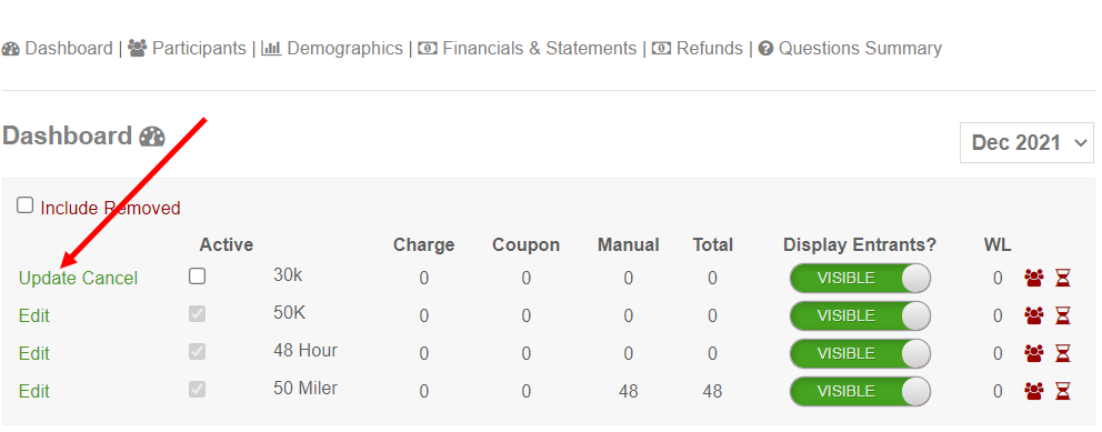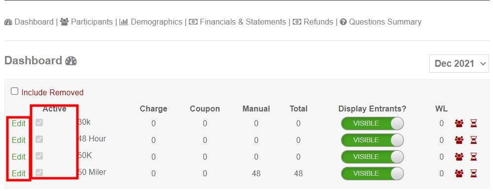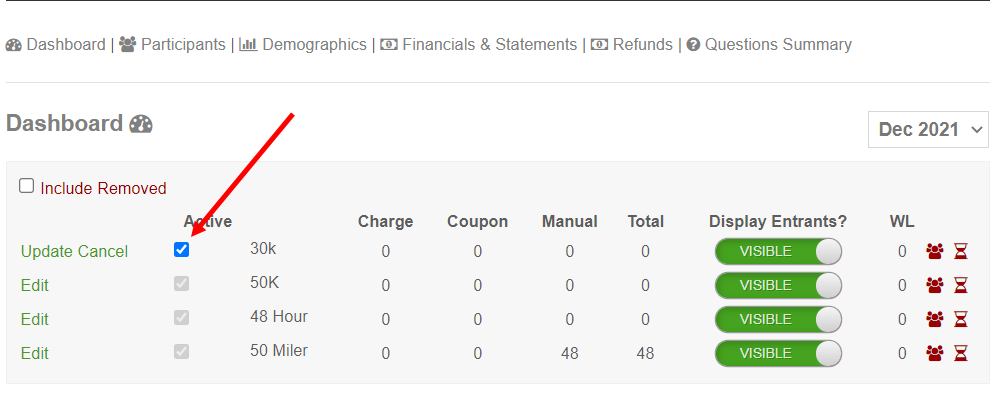 If your event distances have changed, or you are adding on new distances, and removing others, you will first want to deactivate the distances you're no longer offering.