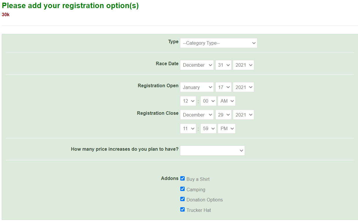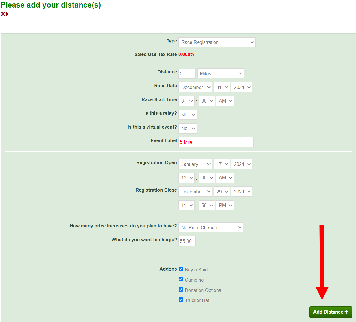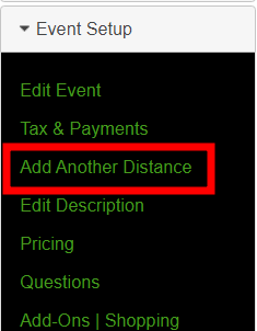 Navigate to your Event Setup tab, and click Add Another Distance.