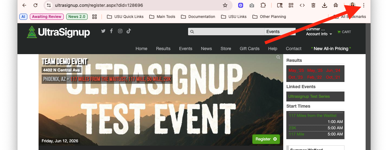 Open your UltraSignup registration home page - this is the main registration link you would typically share with participants.