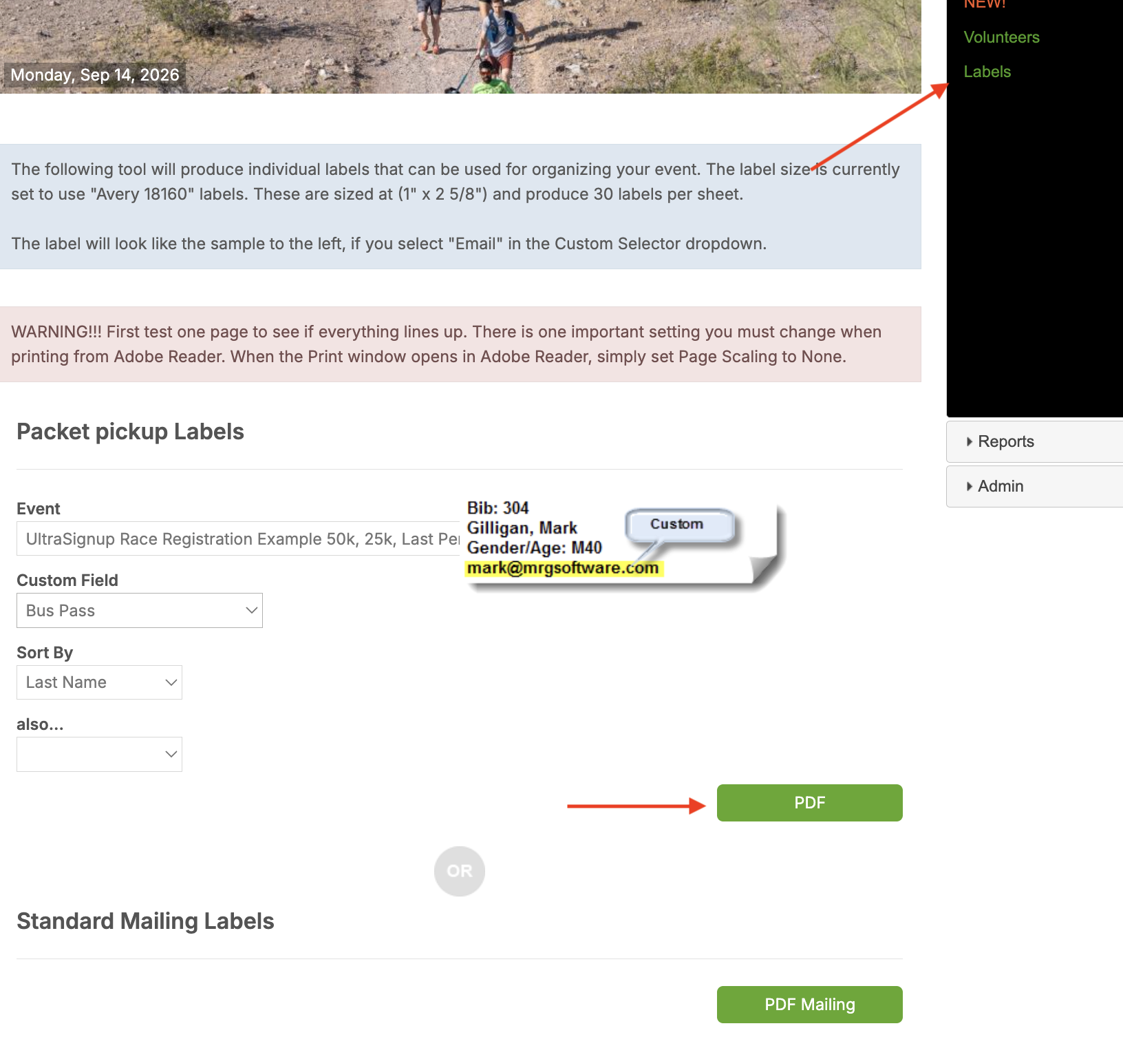 The Labels tool allows you to generate printable participant labels to help organize race-day logistics like packet pickup, bib sorting, drop bags, and more.