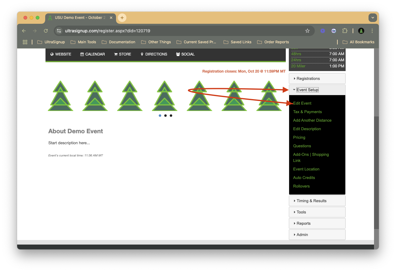 Event Setup >> Edit Event >> General